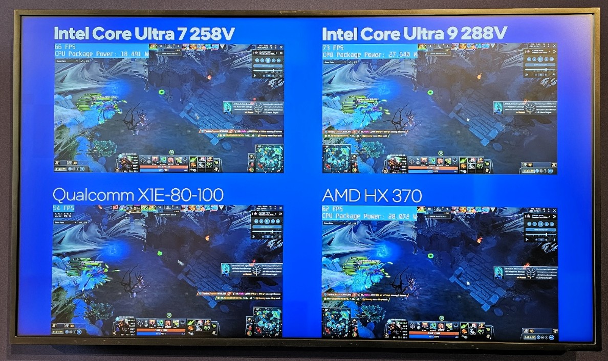 Intel also ran several “live” demos, in which games like DOTA 2 were looped on comparable machines to show off how well Lunar Lake performed. Intel executives also pushed the button to launch several demos on their own captive hardware. In live demos (at 1080p, Medium settings, with XeSS enabled) Lunar Lake laptops hit playable 60ish and 70ish frame rates in Cyberpunk: 2077 and Shadow of the Tomb Raider. We have to take every benchmark that we didn’t run ourselves with a grain of salt, though they’re more convincing than just a PowerPoint slide.